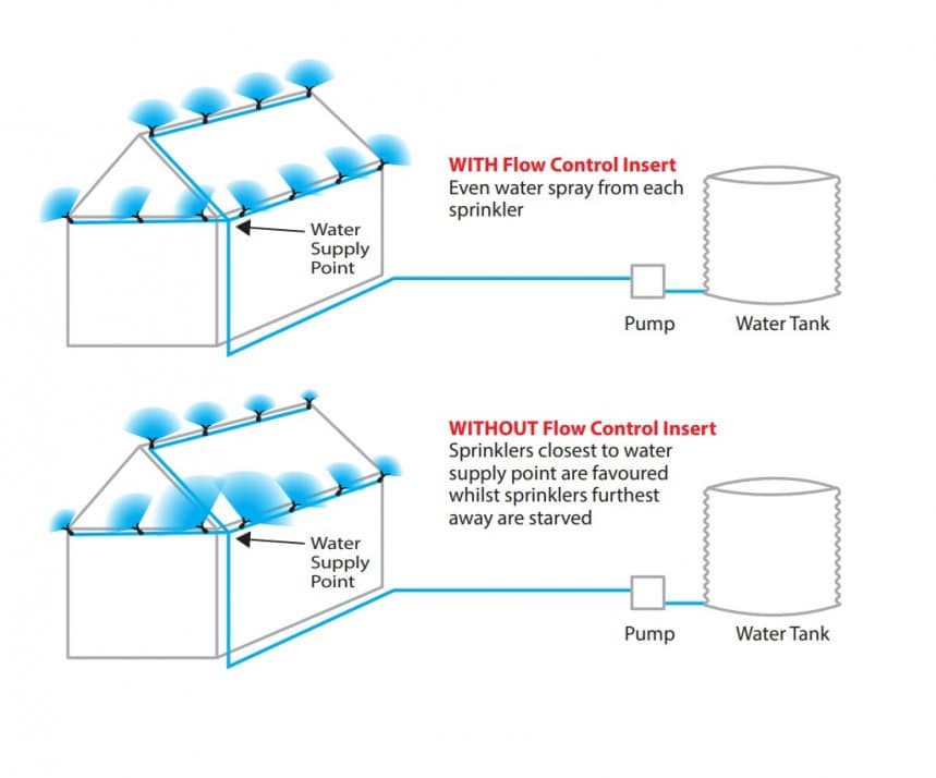 • Flow Control Inserts only available for 2.5mm • Flow Control Inserts are installed at each sprinkler and 3.2mm nozzles